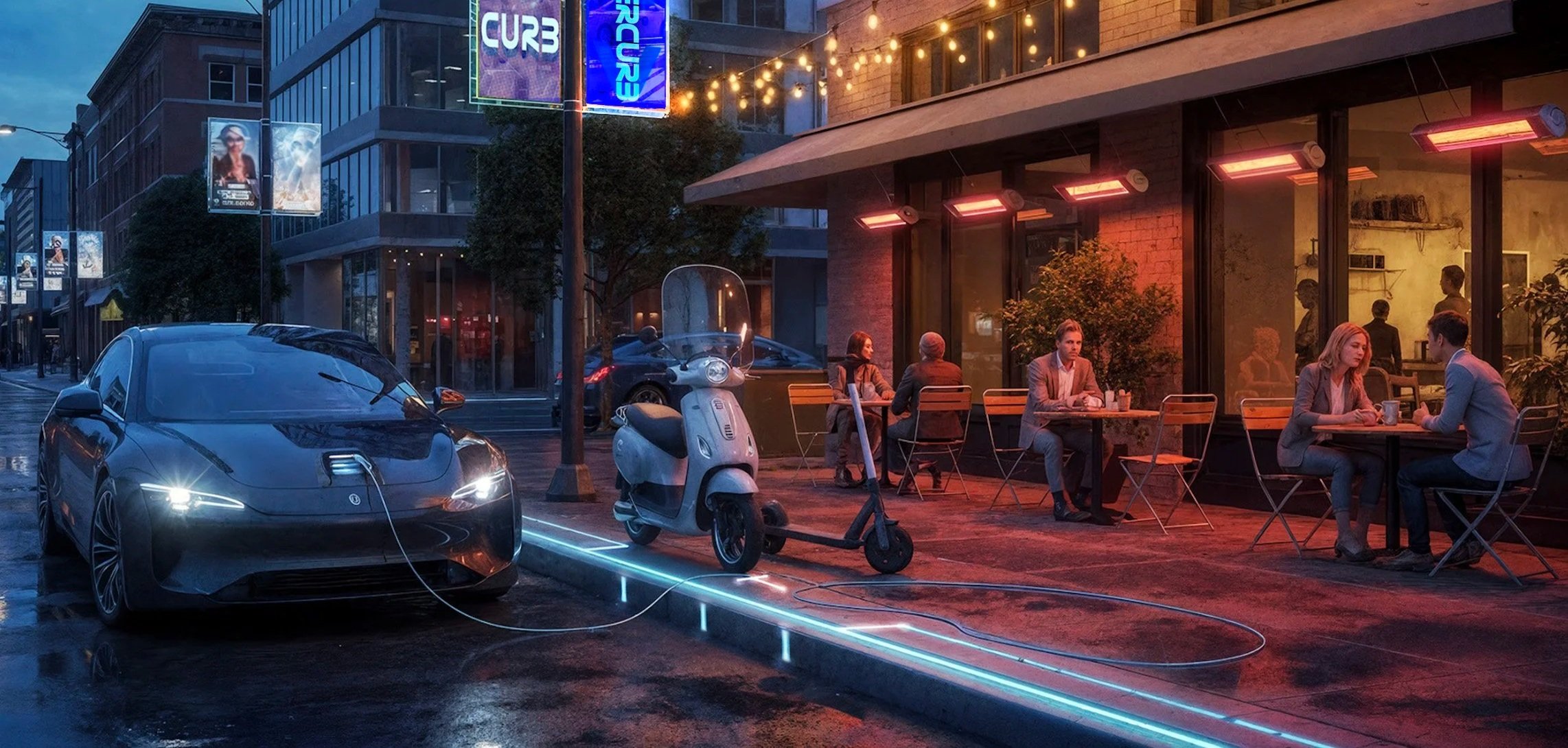 In cities everywhere, curbside competition is at a fever pitch. Ubiquitous nonstop delivery businesses clash daily. There are legions of gig economy laborers prepared to drop off parcels at split-second intervals. A chaotic array of Transportation Network Companies has deployed an onslaught of micro mobility choices to use with only the slightest consumer effort. Ridesharing behemoths Uber, Lyft, DiDi, utilize a swarm of cars, scooters, and e-bikes powered by dynamic algorithms to dominate commerce at the sidewalk edge. Shared mobility networks are significantly disrupting the multitrillion-dollar car manufacturing industry. Couple that problem with parking and charging the massive wave of electric cars coming on-line. But that’s not all. The curbside has continuously been an overcrowded area, and recently the race for limited access to it has culminated into new abundant areas of engagement. Restaurants, cafes, and bars now fight for space and access to energy alongside the curb. Unsurprisingly retail stores are now jockeying for relevance and advertising at the curb. Where will they get access to on-site power, lighting, and intelligent display systems to make this all work in unison? Now there’s a parade of mobility and ecommerce networks in fierce combat for a sliver of street turf. While urban management groups fight to cope with who gets an equal share, what essential new upgrades does the curb require? It needs the most basic of requirements and that’s power. Powering the curb catapults both sidewalks and streets into the contemporaneous era. Removing the old stone curb from city streets is a must. It will be easily replaced with a self-regulating electrified loop that provides access to energy and charges the next economy.